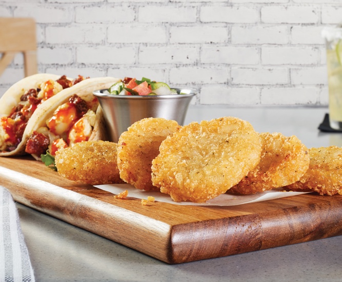 Add a flavorful kick to the brunch menu with chorizo sausage tacos topped with Buffalo sauce. Serve with McCain® Babycakes for a hearty twist on tortilla chips.