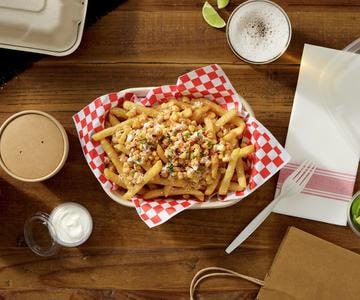 Highlight the a-maize-ing flavors of summer with Elote Fries: golden fries layered with seasoned chili-lime corn and Mexican crema, topped off with crumbled cotija cheese.
