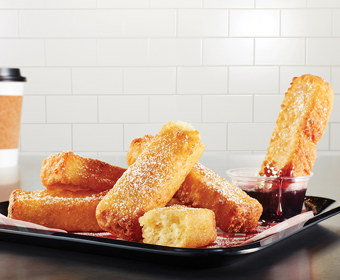 Golden Crisp French Toast Sticks are the ultimate on-the-go indulgence with blueberry syrup for dipping.