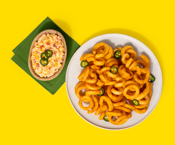 Crisp seasoned spiral-cut fries served with jalapeño pimento cheese dip.